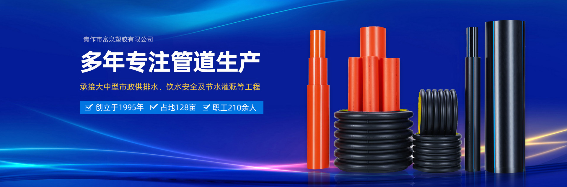 - 焦作市富泉塑胶有限公司,创立于1995年,是一家集研发、设计、生产、销售为一体的大型管材企业。公司位于太极故里、黄河之滨一一河南焦作温县。公司占地128亩,现有职工210余人,其中具有中技术职称的19人。生产、检验设备58台(套),包括PVC实壁管生产线11套、PE实壁管生产线12套、HDPE双壁波纹管生产线6套、PVC双壁波纹管生产线5套,检验设备14台(套)。主要产品有:Φ20mm-630mm、各种压力规格的PVCU、PVC-M、PE给水管材,PVC-U节水灌溉管材,HDPE燃气和矿用管材,DN200-800mm的HDPE、PVC双壁波纹管及各种喷灌、滴灌工程材料。承接大中型市政供排水、饮水安全及节水灌溉等工程。 富泉塑胶公司重视产品的质量、安全、环保和节能,在同行业中率先完成了“新华节水产品认证”,全方面通过ISO9001:2008国际质量管理体系、IS014001:2004环境管理体系和OHSAS18001职业健康安全管理体系的一体化导入,并建立起规范的现代企业管理体系。公司以“质量”为先导,采用质量跟踪、多环节把关的方法,组建具有行业水准的企业技术检测中心,常年委托水利部节水灌溉设备检测中心、河南省产品质量监督检验院对产品跟踪检测,并由中国人民保险公司承保产品质量。公司连续多年被河南省水利厅确定为“安全饮水设备、节水灌溉设备”定点生产企业,并获得“中国名优产品”“质量、服务、信誉AAA企业”“河南省**产品”“河南省水利企业”“河南省守合同、重信用企业”等荣誉称号?! 「蝗芙汗炯岢帧坝没稀钡姆窭砟?,长期以来,全方面关注客户价值,不断提升服务水平。服务队伍常年为客户的产品设计、施工、安装提供合理的方案和全程细致、周到、**、快捷的技术服务。公司自成立以来,一直坚持以人为本的宗旨,塑造企业形象,并致力于新产品的开发,凭借雄厚的技术开发能力,先进的工艺制造流程,严格的质量管理保证体系,优良的售后服务网络,已成为河南省大的饮水、灌溉及排水管材设备制造商。产品畅销全国,而且还以公司雄厚的综合实力在业界中占据着重要的地位。